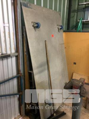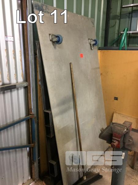 ALLOY PLATE WITH CASTORS, 2100 x 1200 x 10mm & STEEL PLATE BEHIND