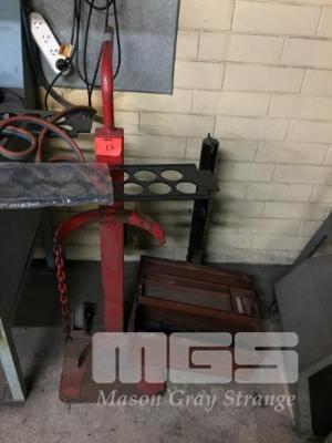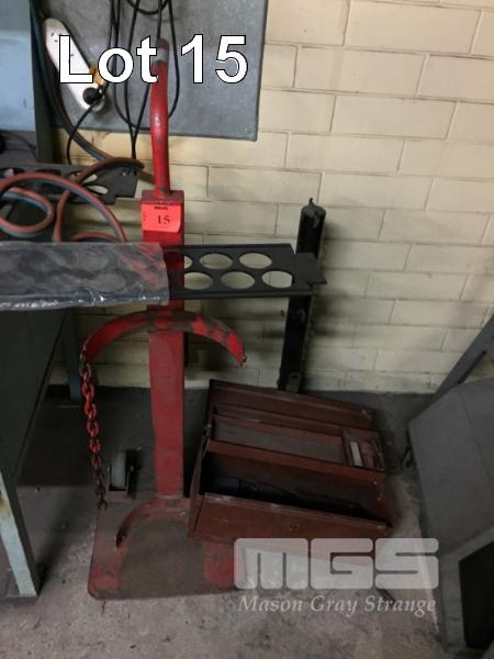 2 x GAS BOTTLES STANDS, RED & BLACK & STEEL TOOL BOX
