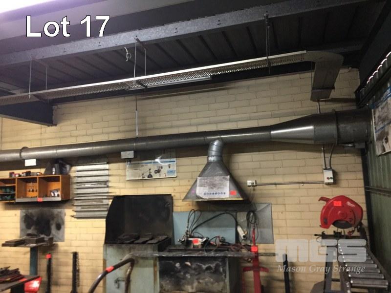 5 STATION FUME EXTRACTION SYSTEM, GALV STEEL FLUMING WITH 350mm 415V EXTRACTION FAN & CONTACTOR.