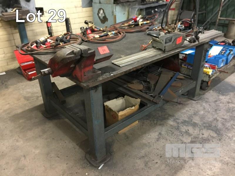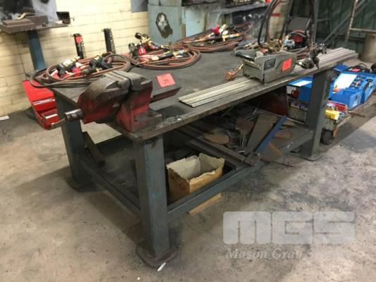 PLATESTEEL TOP, HEAVY DUTY WELDING BENCH WITH 125mm DAWN OFFSET VICE, 1800 x 1200 x 25mm PLATE