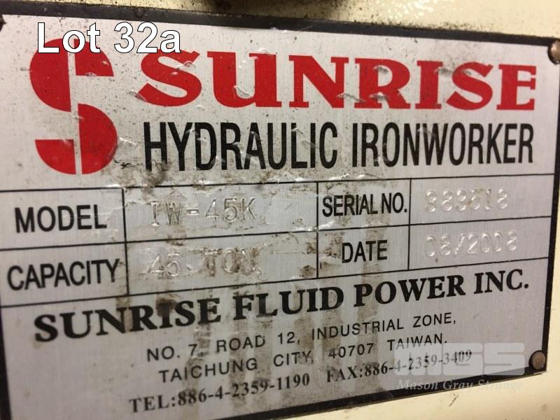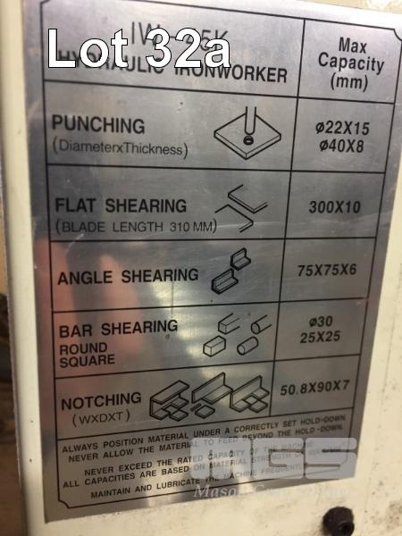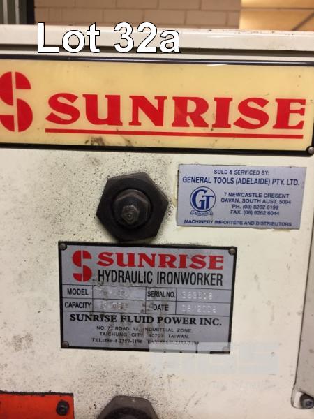SUNRISE PUNCH & SHEAR MOD: 1W45K S/NO: 383518 DOM: 08/2008 PUNCH SHEAR & NOTCH CAPACITY 300mm ROUND, 75 x 75 x 6 ANGLE PUNCH 22 x 15mm 40/8 415V, 3 PHASE, BACK STOP PLUS TOOLKIT & 10 x SETS PUNCHES