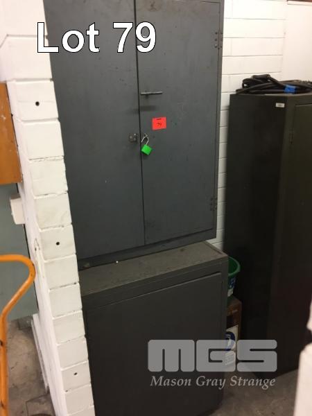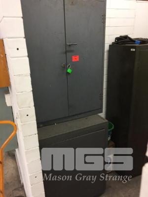 2 x LOWLINE STORAGE CUPBOARDS, STEEL 2 DOOR, 6 SHELVES, 900 x 1200mm & TIMBER 1 DOOR, 4 SHELF, 1000 x 800mm