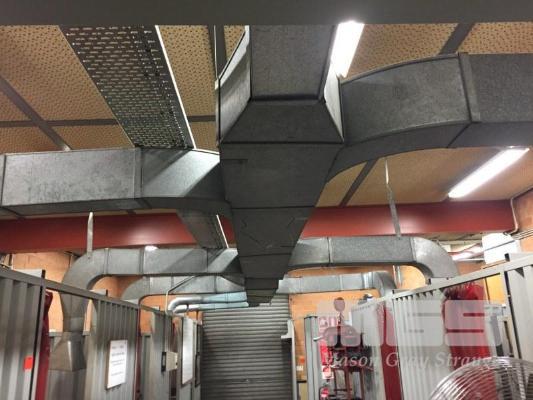 LARGE FUME EXTRACTION SYSTEM, 9 STATIONS GALV SHEET DUCTING & ROOF MOUNT EXTRACTION FAN