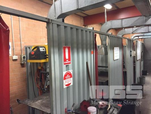 9 x WELDERS BAYS, SHEET METAL WALLS & CURTAINS