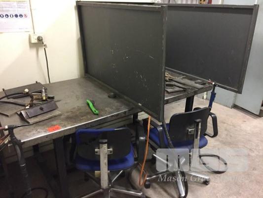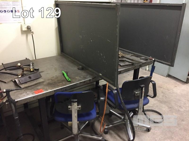 WELDERS BENCH, SHEET STEEL TOP, 1900 x 900mm 2 x CHAIRS