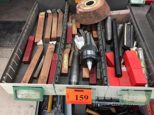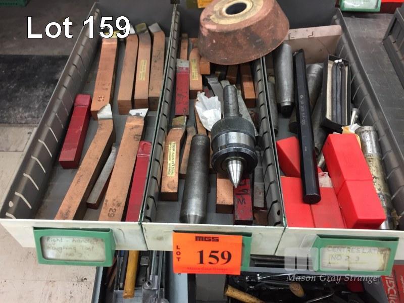 3 x TRAYS LATHE TOOLS, BORING BARDS, TIPPED TOOLS, TIPS, LATHE CENTRES & LIVE CENTRE