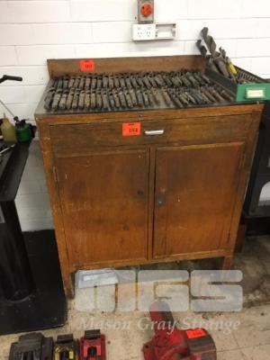 TIMBER 2 DOOR CABINET & CONTENTS, VARIOUS SPARES, HARDWARE & TOOLS