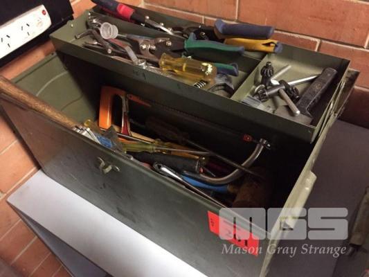 TOOLBOX & CONTENTS, FILES, HAMMERS, SCREWDRIVERS & MORE