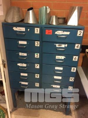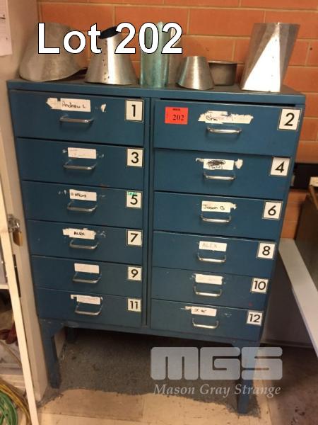 STEEL 12 DRAWER PARTS CUPBOARD, 1450 x 1000 x 350mm