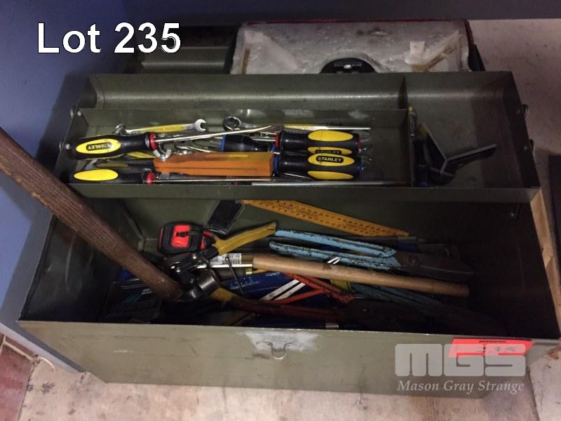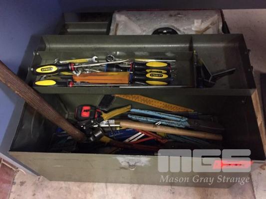 TOOLBOX & CONTENTS, DRIVERS, SNIPS, CLAMPS, RULERS, SQUARES & HAMMERS
