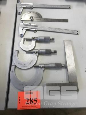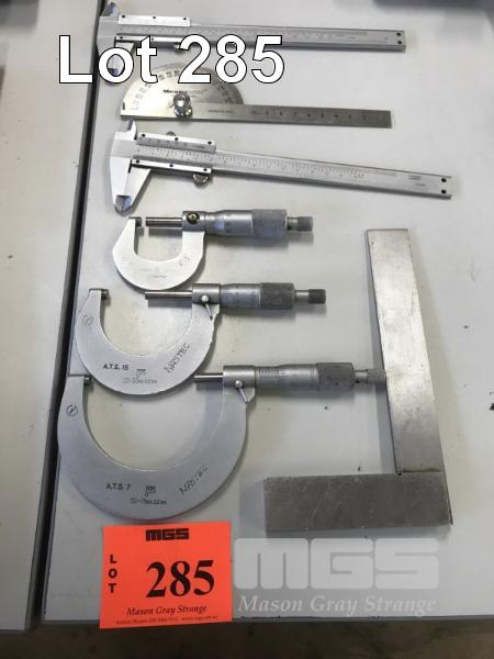 3 x MICROMETERS, 0.25mm, 25-50mm & 50-75mm PLUS 2 x 150mm VERNIERS & SQUARES