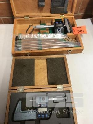 MITUTOYO DIGITAL DEPTH GAUGE, 0-150mm IN CASE PLUS MITUTOYO DIGITAL MICROMETER, 25-50mm