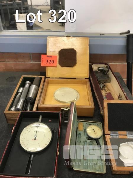 ASSORTED METROLOGY LENSES, DIAL GAUGES, HEIGHT GAUGE BASE, ASSORTED KNOWN BAR GAUGES