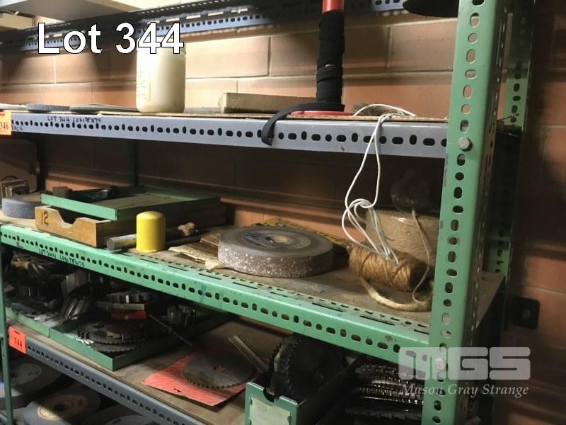 CONTENTS TOP 4 SHELVES OF RACK, LARGE QUANTITY MILLING CUTTERS, GRINDING STONES ETC