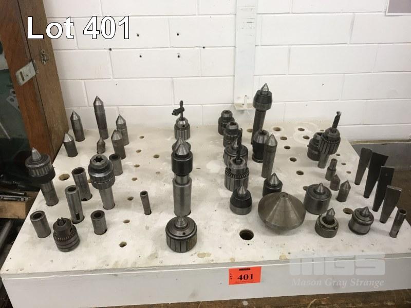 ASSORTED LATHE ACCESSORIES, LIVE & HEAD CENTRES, M/T SLEEVES, DRILL CHUCKS & ADAPTERS