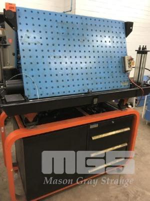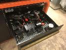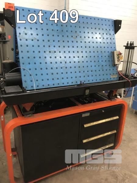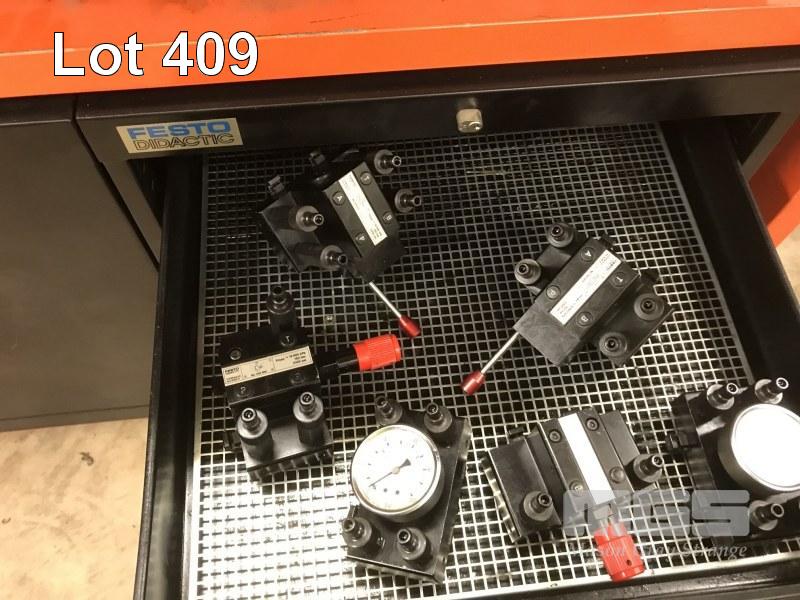 FESTO HYDRAULIC DIDACTIC TEST BENCH, MOBILE WITH DOUBLE, 1100 x 700mm SIDED COMPONENTS BOARD, 2 x 3 DRAWER FESTO TOOLBOXES & QUANTITY HYDRAULIC COMPONENTS, HOSES & FITTINGS UNIT COMES WITH 240V HYDRAULIC PUMP & REMOTE CONTROL, FITTED WITH ES AND FULL DRIP TRAY BENCH, 1850mm (H) x 1600mm (L) x 650mm