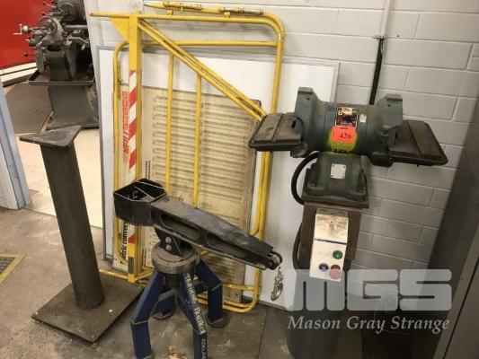 WALDOWN DOUBLE ENDED BENCH GRINDER, 8" 415V, ON PEDESTAL PLUS STUDENT PROJECT, MODEL CRANE & PEDESTAL