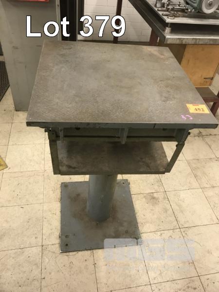 SURFACE TABLE, CAST IRON ON PEDESTAL STAND, 610 x 610mm