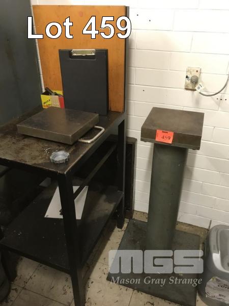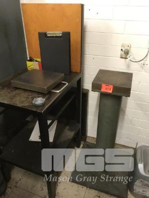 ENGINEERING BLOCK, ON PEDESTAL, 250 x 250 x 50mm PLUS SMALL 2 TIER WORK BENCH, WITH BACKBOARD