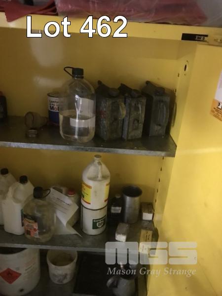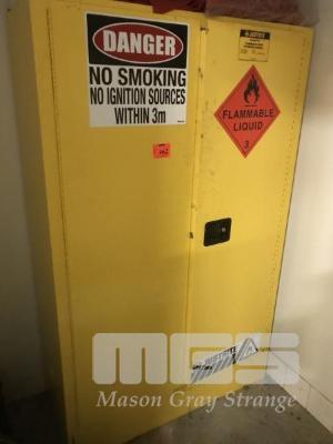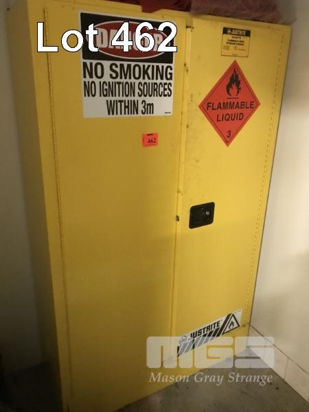250 LITRE JUSTRITE FLAMMABLES CABINET, 1760 x 1100mm & CONTENTS OILS, SOLVENTS, CUTTING FLUIDS