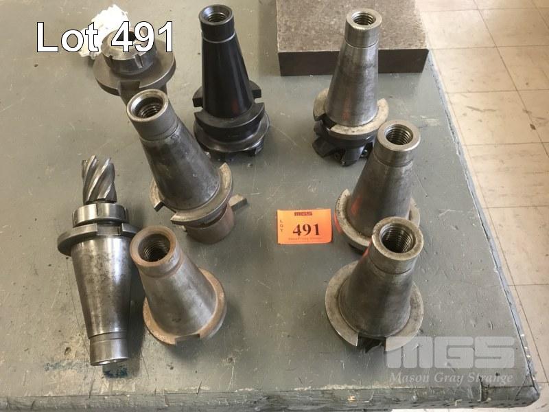 8 x INT 50 TOOL HOLDERS, WITH FACE CUTTERS, 4 x COLLET CHUCKS & CUTTERS