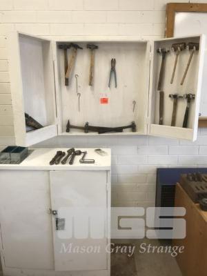 LOWLINE STEEL 2 DOOR CUPBOARD & TIMBER WALL MOUNT TOOL BOX & CONTENTS