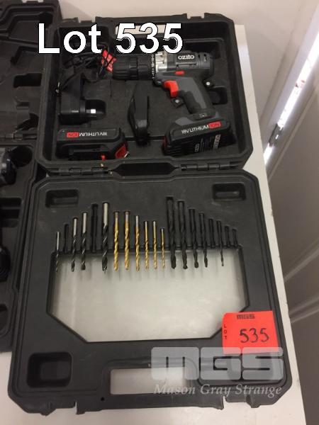 OZITO 18V CORDLESS DRILL KIT, 2 x BATTERIES & CHARGER WITH DRILLS, IN CARRY CASE