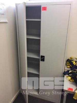 GREY STEEL 2 DOOR STATIONERY CUPBOARD, 1800 x 900mm WHITEBOARD, 1800 x 1200mm