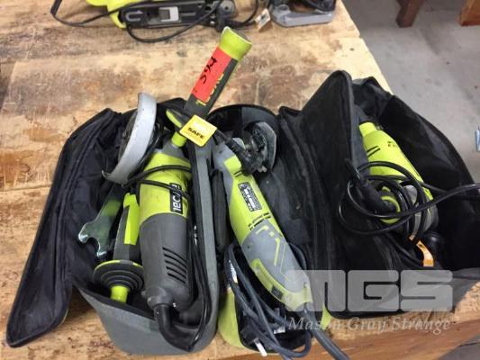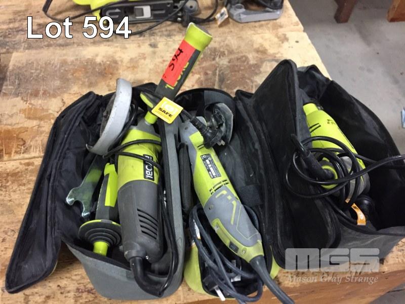 RYOBI HAMMER DRILL, 13mm MOD: RPD800 RYOBI ORBITAL SANDER MOD: RMT2004 RYOBI 125mm ANGLE GRINDER MOD: EAG75125