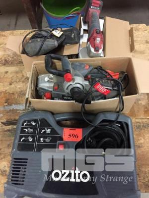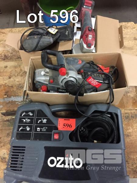 OZITO PORTABLE COMPRESSOR MOD: ACK0015 240V CORDLESS ANGLE GRINDER, 125mm MOD: PXAGS500 OZITO BELT SANDER, ORBITAL SANDER, 240V