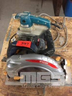 RYOBI 9" CIRCULAR SAW, 235mm MOD: ESF-23235 MAKITA 1/2 SHEET SANDER MOD: G04SN 240V