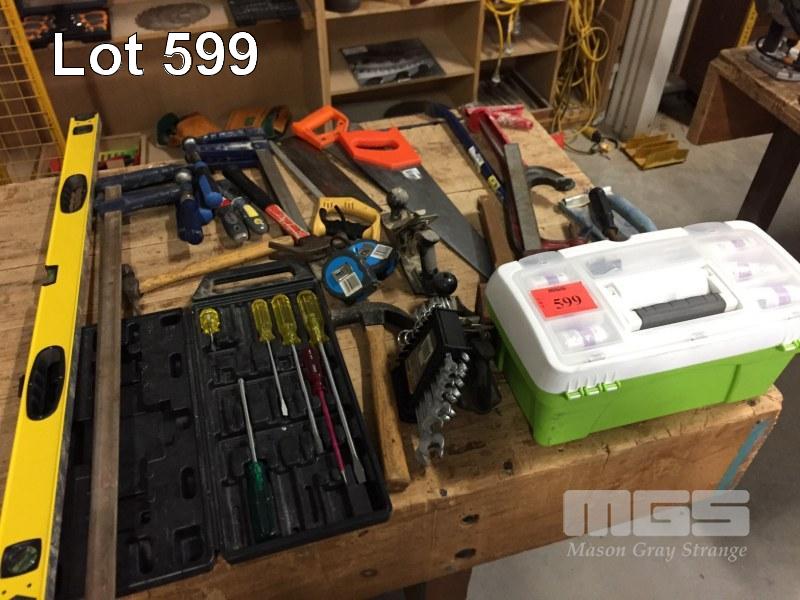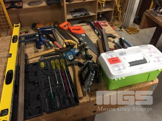 QUANTITY HAND TOOLS, HAND SAWS, 'F' CLAMPS, PLANERS, MEDICAL KIT, SCREW DRIVERS, LEVELS ETC