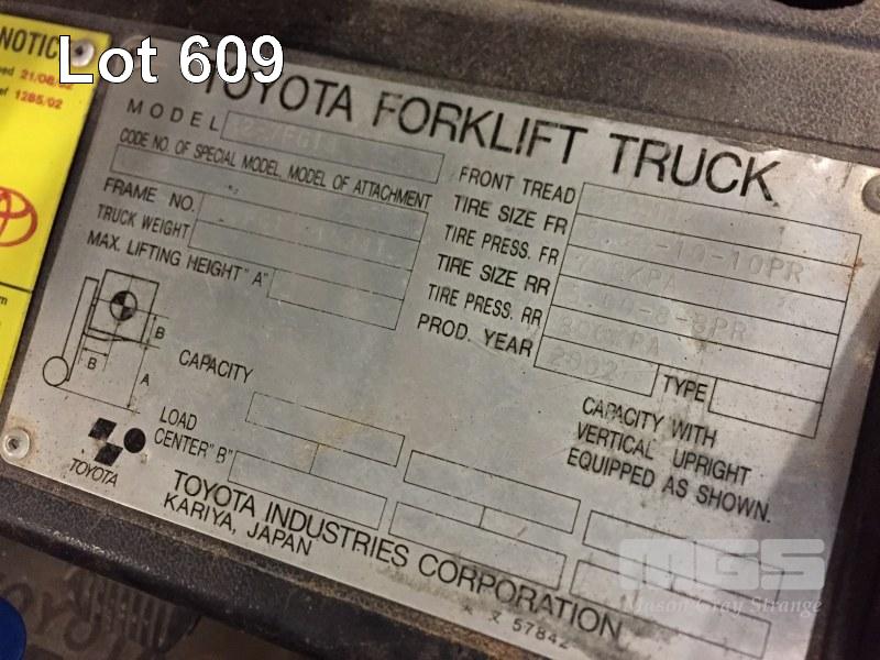 2002 TOYOTA 42-7FG18 FORKLIFT REG: KPS 089 HOURS: 10,054.2 INDICATED PETROL/LPG, SOLID TYRES, 2 STAGE MAST, 1,490kg LOAD RATINGS (NO PAPERS, NO OWNER'S MANUAL, NO SERVICE BOOKS)