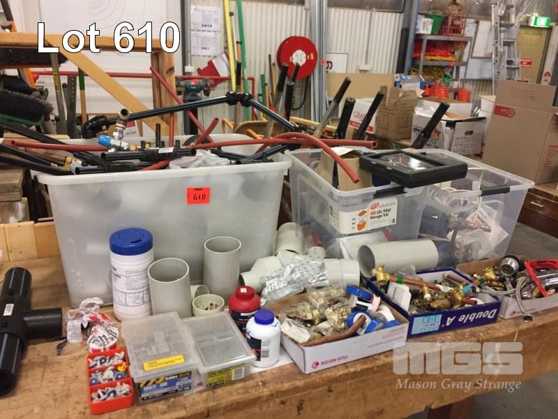 LARGE QUANTITY PLUMBING FITTINGS, TAPS, OUTLETS, COUPLERS, BRASS FITTINGS, PVC FITTINGS