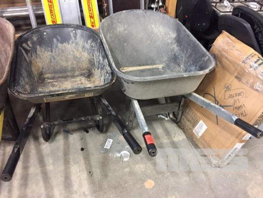 2 x BUILDERS WHEELBARROWS, PLASTIC TUBS
