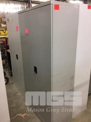 PAIR STEEL GREY 2 DOOR STOCK CUPBOARDS, 1850 x 900m