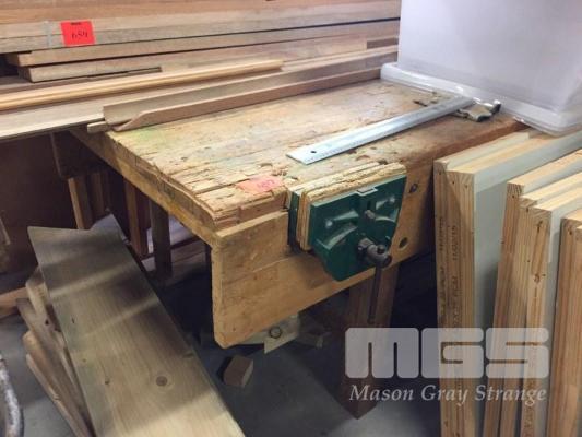DOUBLE SIDED TIMBER WORKBENCH & 2 RECORD 53 WOOD VICE, 2440 x 900mm