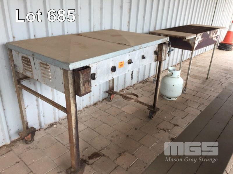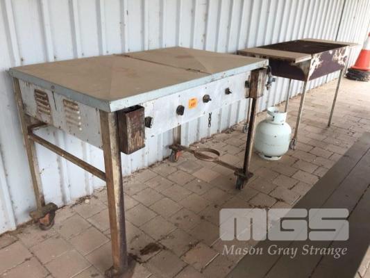 4 BURNER LPG BBQ,plus CHARCOAL GRILL 2 x DOUBLE SIDED TIMBER PICNIC BENCHES, 2000 x 820mm