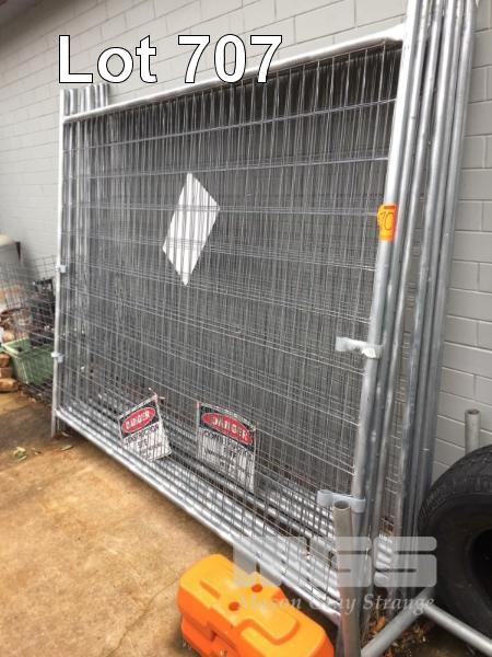 10 x TEMPORARY FENCE PANELS & 22 x ORANGE BASES, GALV MESH, 2400 x 2100mm SMALL GALV RACK