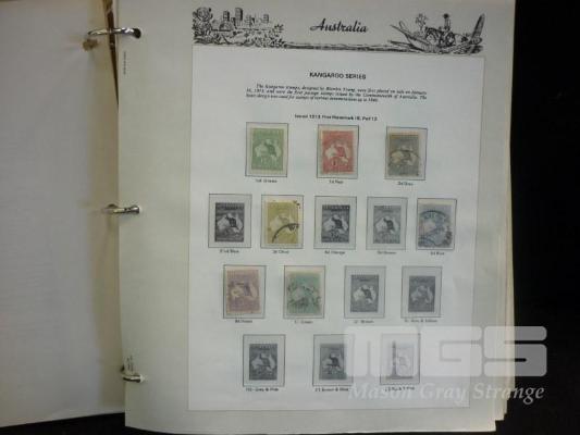 AUSTRALIAN SEVEN SEA HINGE-LESS STAMP ALBUM, 1913/79, INC; ROOS X 18, KGV's X 35, MOSTLY UNHINGED