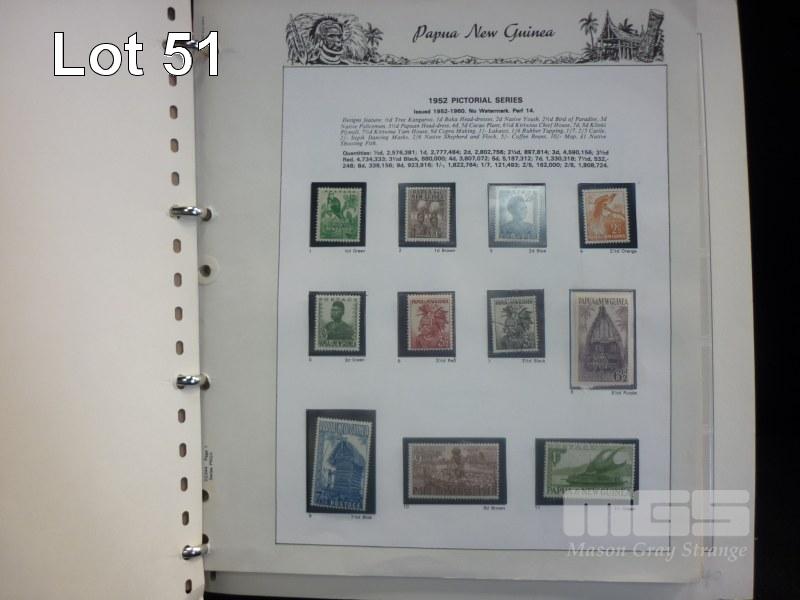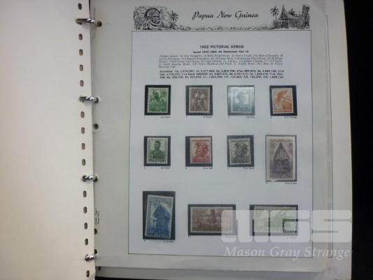 PAPAU NEW GUINEA HINGLESS STAMP ALBUM, 1952-2000, MOSTLY UNHINGED