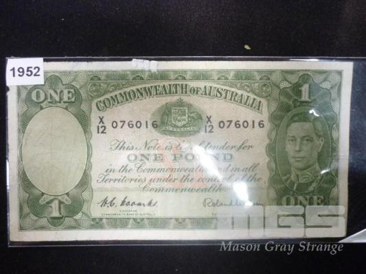 COMMONWEALTH OF AUSTRALIA, 1952, ONE POUND, PAPER BANKNOTE, COOMBS/WILSON, X 12 076016