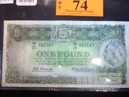 COMMONWEALTH OF AUSTRALIA, 1961, ONE POUND, PAPER BANKNOTE, COOMBS/WILSON, HK 25 562167