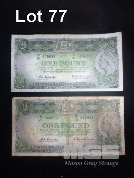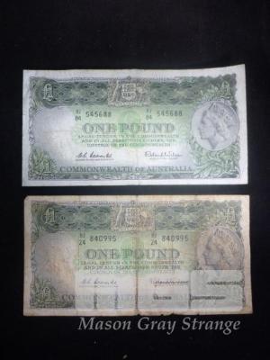 2 X COMMONWEALTH OF AUSTRALIA, 1961, ONE POUND, PAPER BANKNOTES, COOMBS/WILSON, HJ 84 545688 & HJ 24 840995