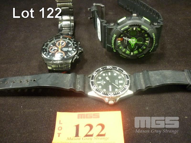 3 x WRISTWATCHES, CITIZEN, PULSAR & G-SHOCK