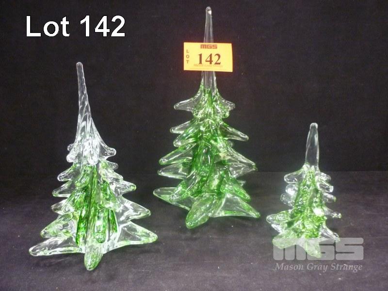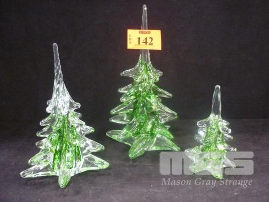 SET 3 x ART GLASS TREES, ENGRAVED MARCOLIN SWEDEN