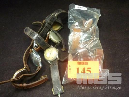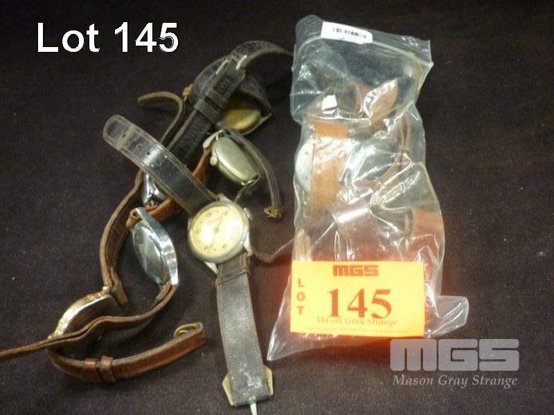 16 x VINTAGE LEATHER BOUND WRISTWATCHES, GOLD PLATED