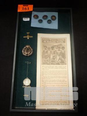 AUSTRALIAN MILITARY FORCES BUTTONS, RAAF BADGE, MEDAL " TO THE WOMEN OF AUSTRALIA, A75266" & NEWS ARTICLE