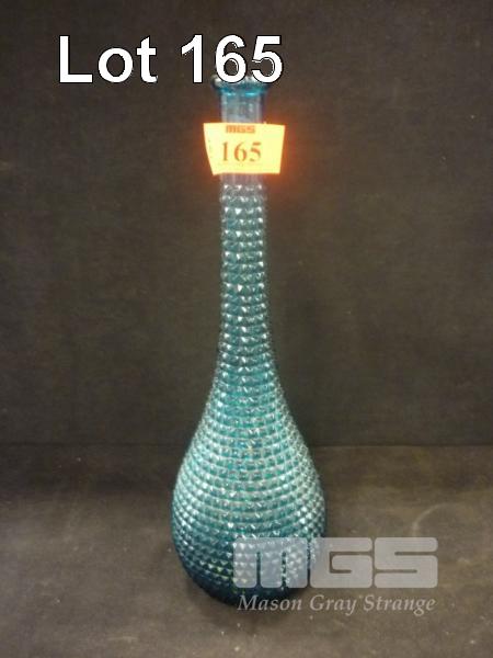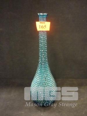 MID CENTURY BLUE GLASS GENIE BOTTLE, MISSING STOPPER