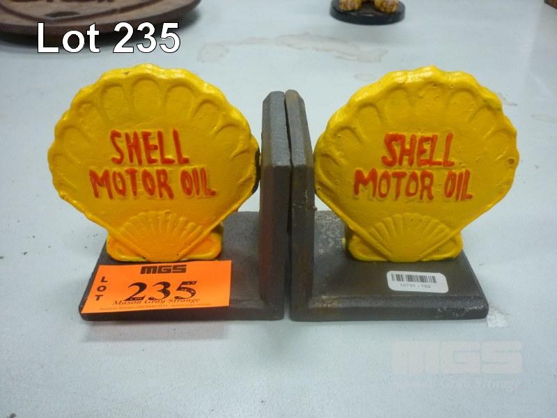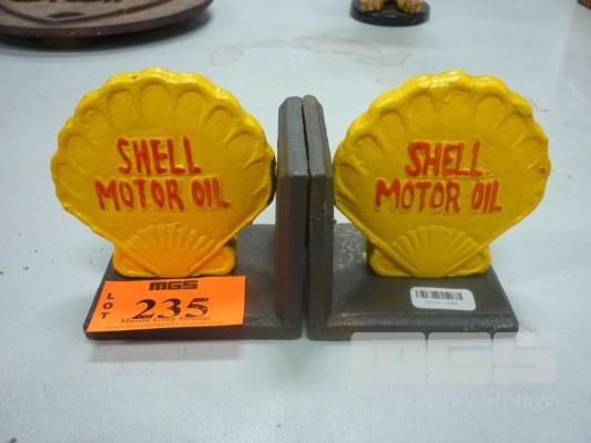 PAIR METAL BOOKENDS, SHELL MOTOR OIL (RE-MADE)